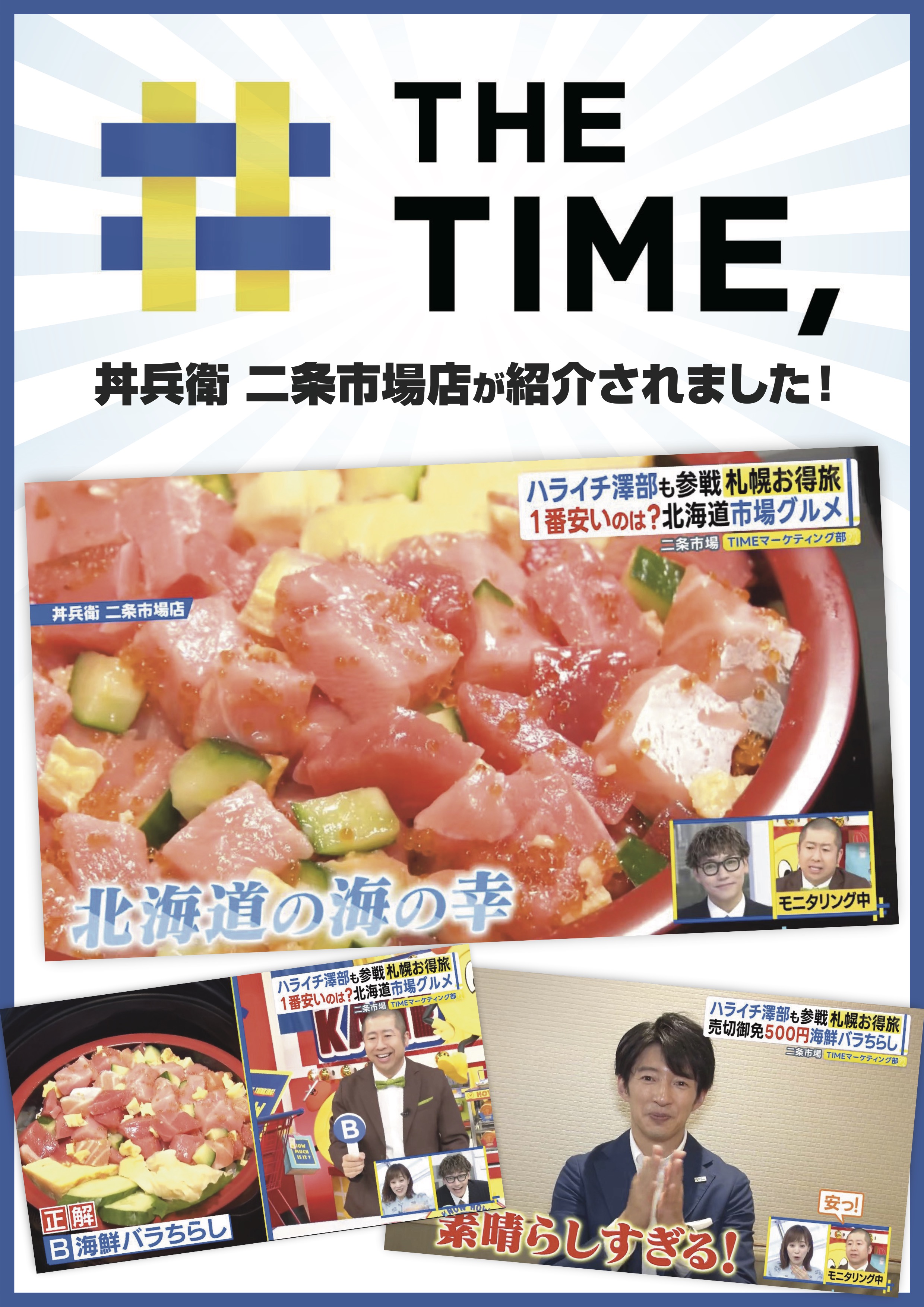 札幌市場の安い海鮮丼のお店として、丼兵衛が札幌テレビ「STVどさんこワイド!!朝!!」の"キニナル"で紹介されました。